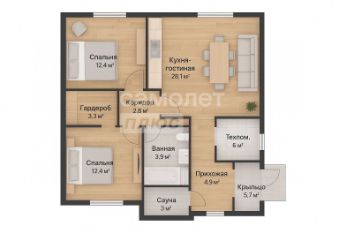 •Котельная (6 кв.м), санузел (3,9 кв.м), гардеробная(3,3 кв.м) и прихожая (4,9 кв.м), сауна( 3 кв.м);