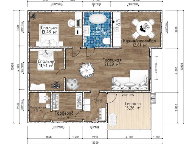 119 м², 1 этаж, каркасные дома